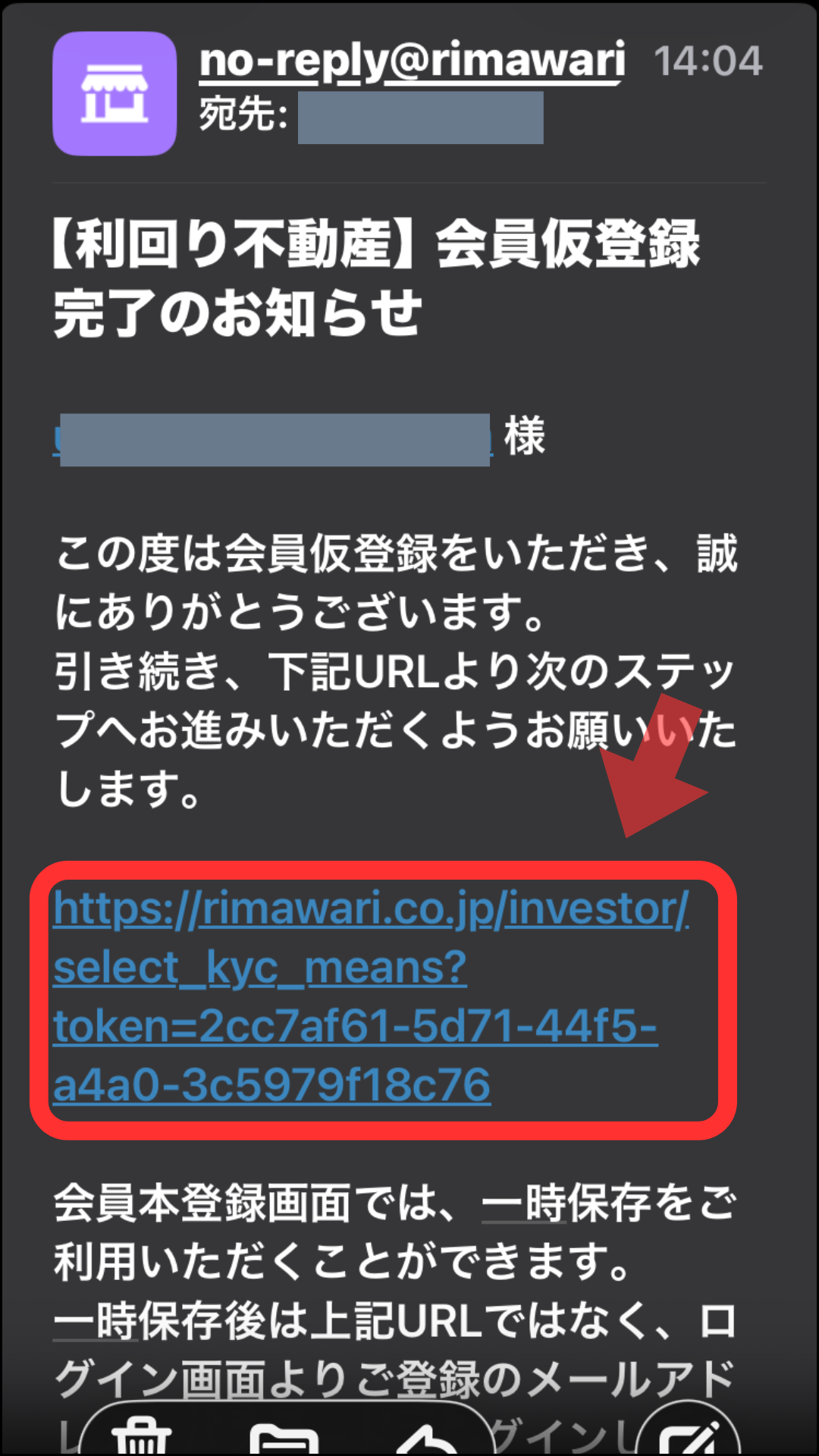すると登録したメールアドレスに、利回り不動産からメールが送られてくるので、下の画像のリンクをクリックします。次の画面では「proost」ボタンをタップし、本人確認に進みましょう。